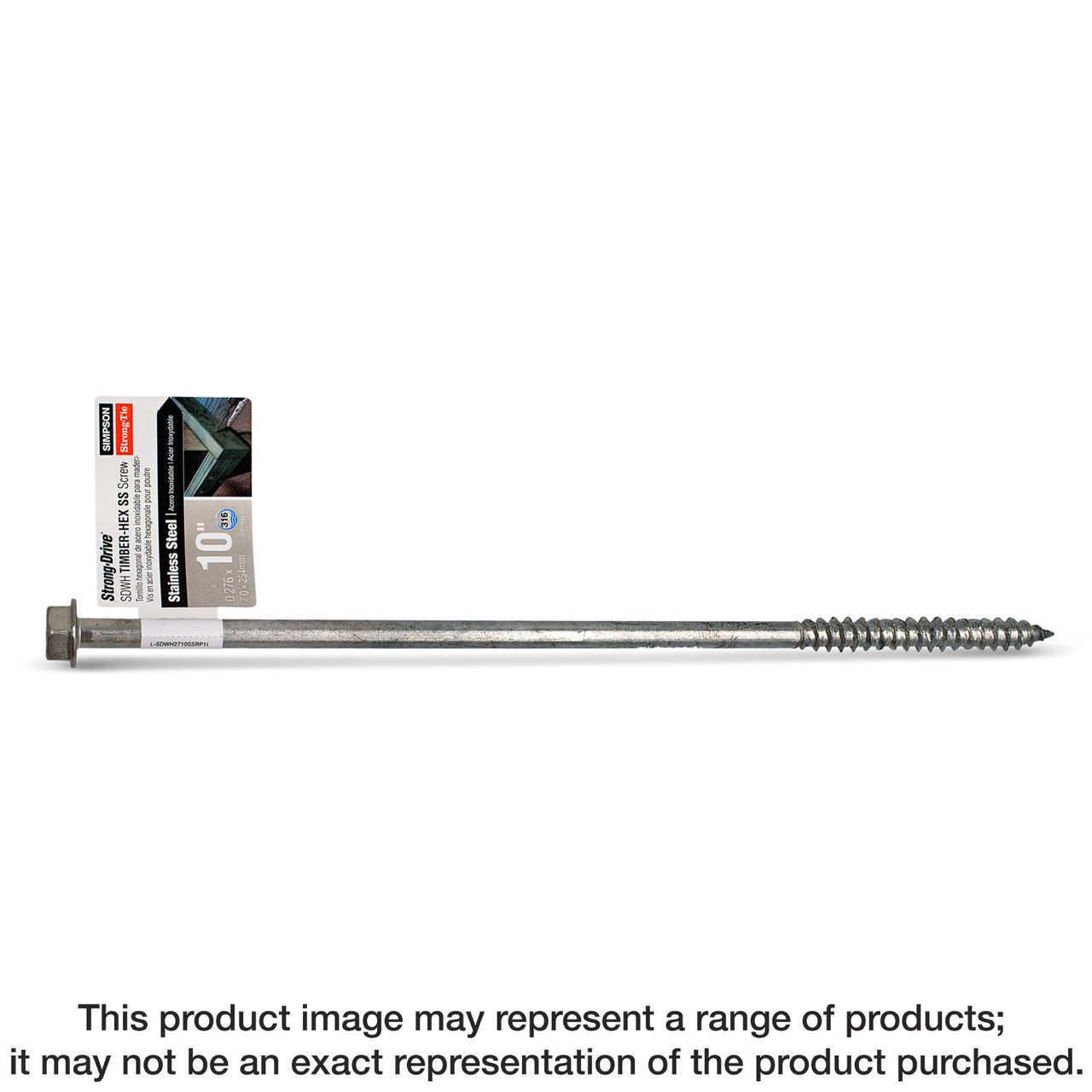 Simpson Strong-Tie SDWH271000SS-R25 Strong-Drive® SDWH™ TIMBER-HEX SS Screw — 0.275 in. x 10 in. 1/2 Hex, Type 316 (25-Qty)